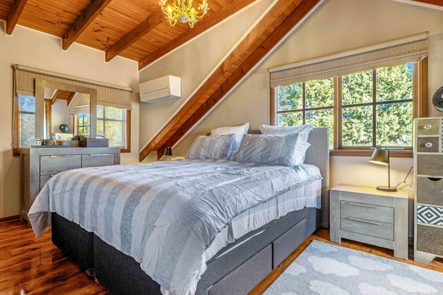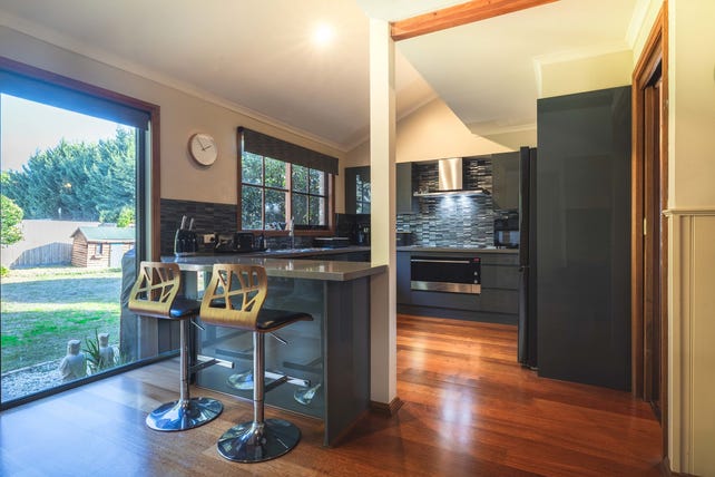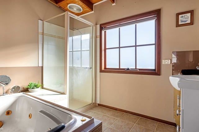 Three bedrooms and two bathrooms sit upstairs, crowned by timber panelled ceilings, and feature a master bedroom with walk-in robe and dedicated ensuite. With additional features comprising split-system heating and cooling, a dedicated laundry, Ring surveillance cameras (2x) and doorbell, and double garage, this conveniently placed family home sits within easy reach of Benton Junior College, Osborne Primary School, and easy freeway access.