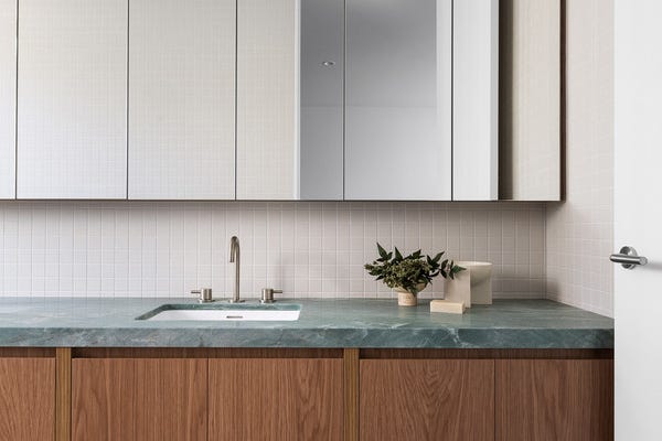 • Gourmet chef's kitchen with marble and Esmeralda quartzite benchtops, premium V-ZUG appliances & integrated Fisher & Paykel fridge/freezer