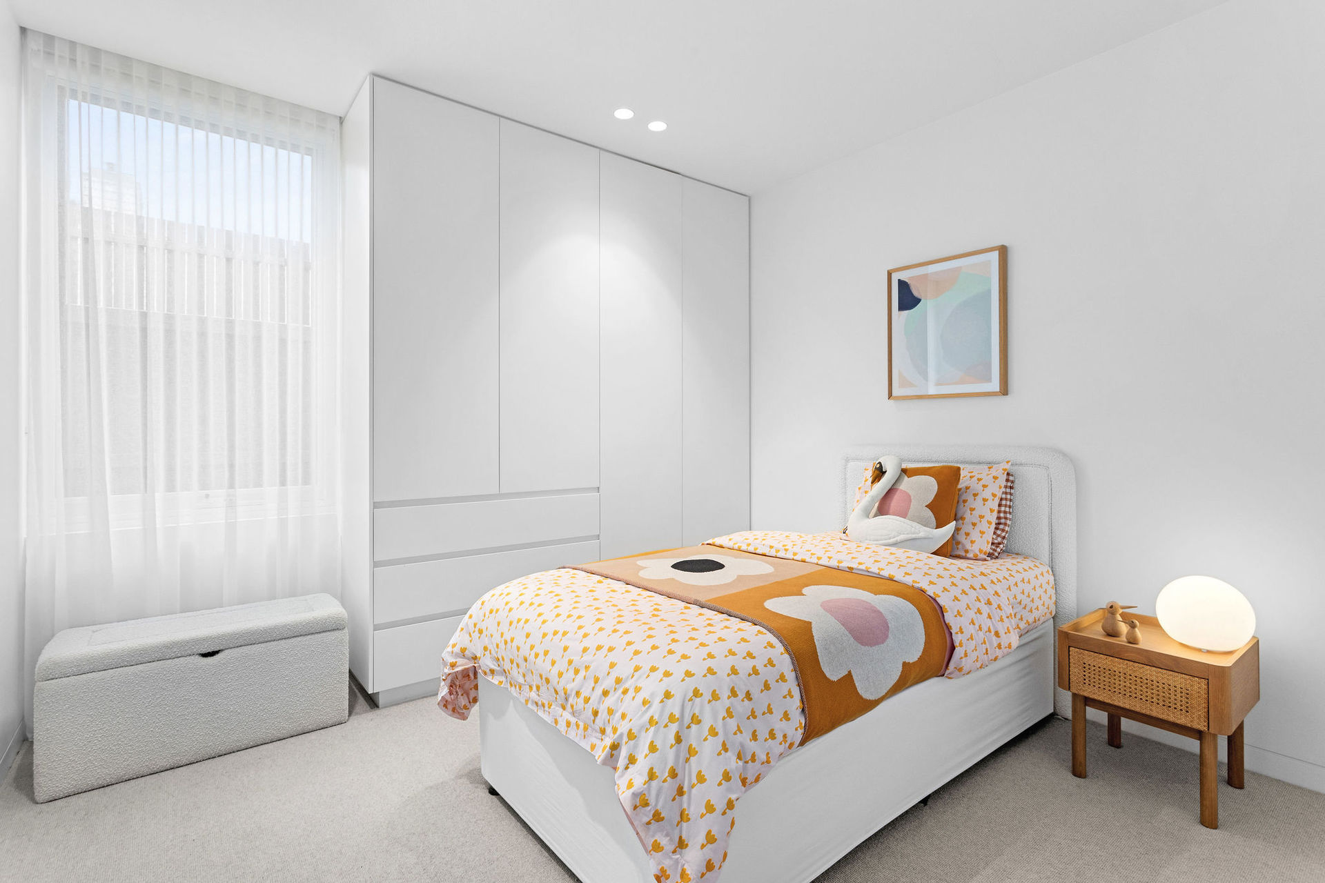 The master suite is a sanctuary of indulgence, with every element carefully considered to evoke a sense of calm and luxury. Two additional bedrooms, equally meticulous in their design, share a dual ensuite adorned with stunning terrazzo floors. A secluded living area, which could also serve as a guest room or potential fourth bedroom, opens onto a private garden, offering a peaceful retreat. This home is further enriched with reverse cycle ducted heating and cooling, an alarm and CCTV system, in-floor hydronic heating, plush 100% New Zealand wool carpets, and a double remote garage with internal access.