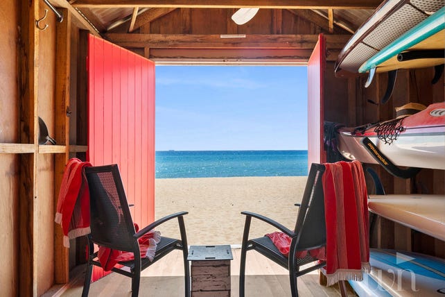 This exclusive bathing box offers a coveted slice of coastal luxury. Perfect for storing summer essentials or enjoying a sunset champagne with breathtaking views over the golden sands and sparkling waters of South Beach.