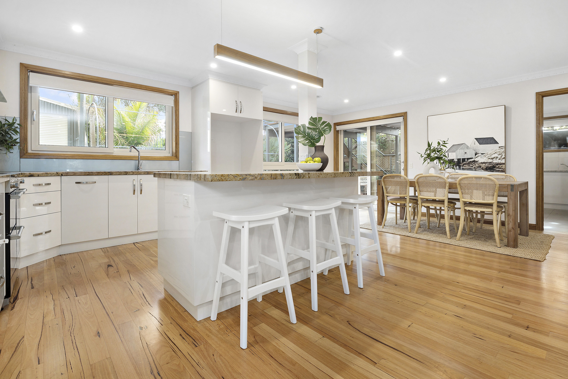 Nestled in a highly desirable neighbourhood, this home includes a double carport leading to a twin garage with a roller door, abundant storage spaces, and the advantages of ducted heating, cooling, and solar panels. Enjoy the convenience of walkability to Bentons Square, local cafes and schools, as well as public transport options for longer trips. Freshly painted, the home exudes a modern and vibrant ambience, ready to move in and savour a seaside lifestyle.