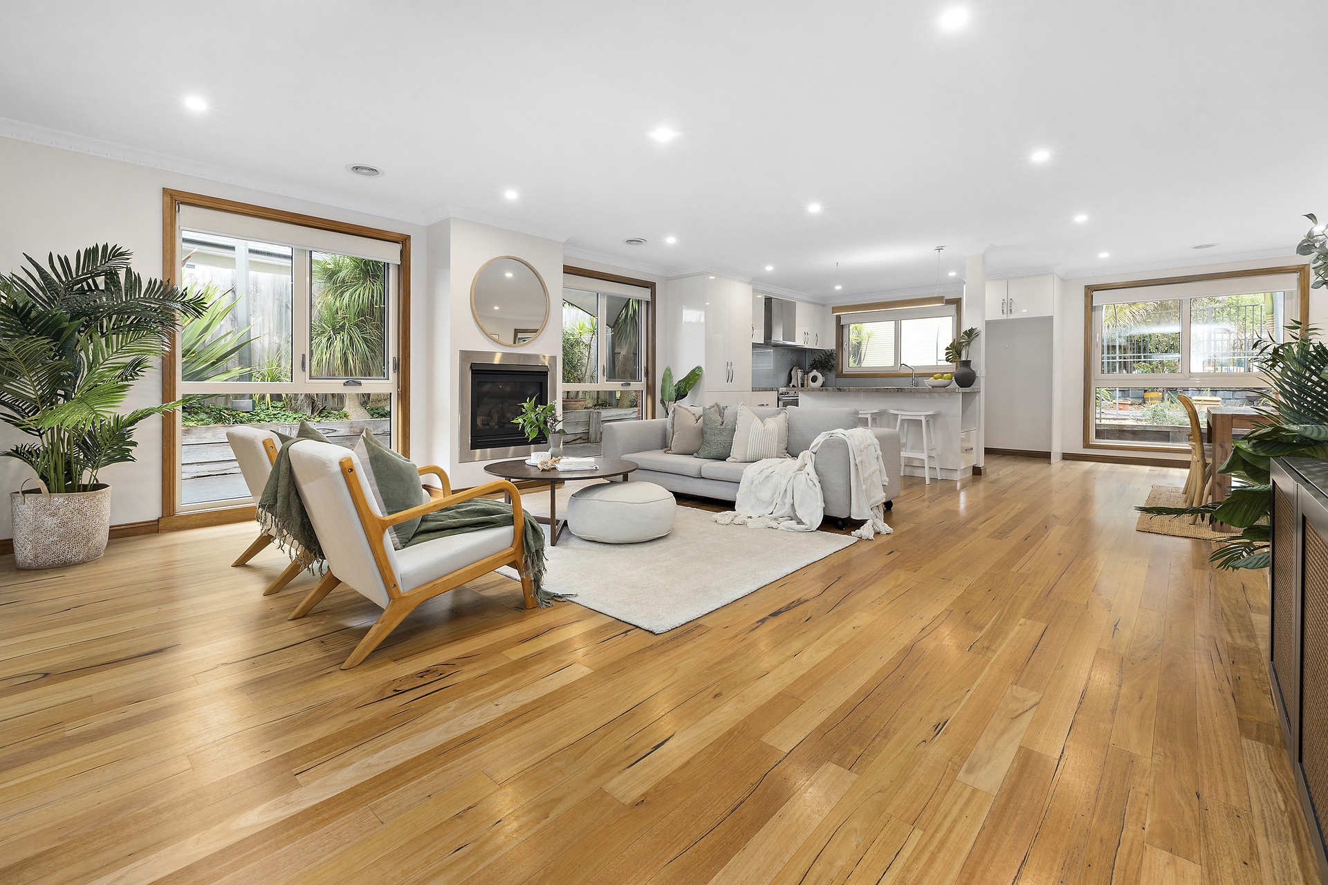 Flaunting a family-focused layout spread across two levels, this property welcomes you with a luminous wide office space and an open-plan living, dining, and kitchen area bathed in natural light and warmed by a stylish and cosy gas fireplace. The kitchen is a culinary dream, featuring elegant stone bench tops, an induction cooktop, stainless steel appliances, and a chic island accented with pendant lighting. Enhancing the home's convenience and functionality is an oversized laundry and a well-appointed butler's pantry, featuring ample storage and a wine cooler.