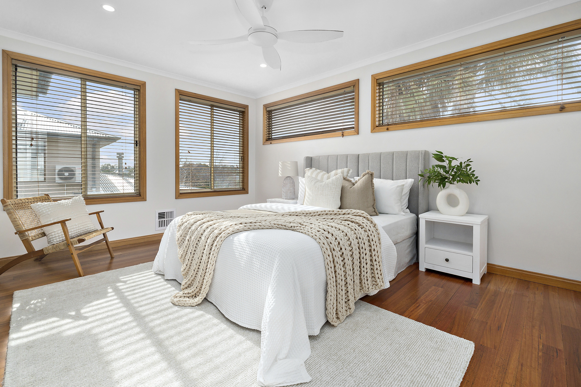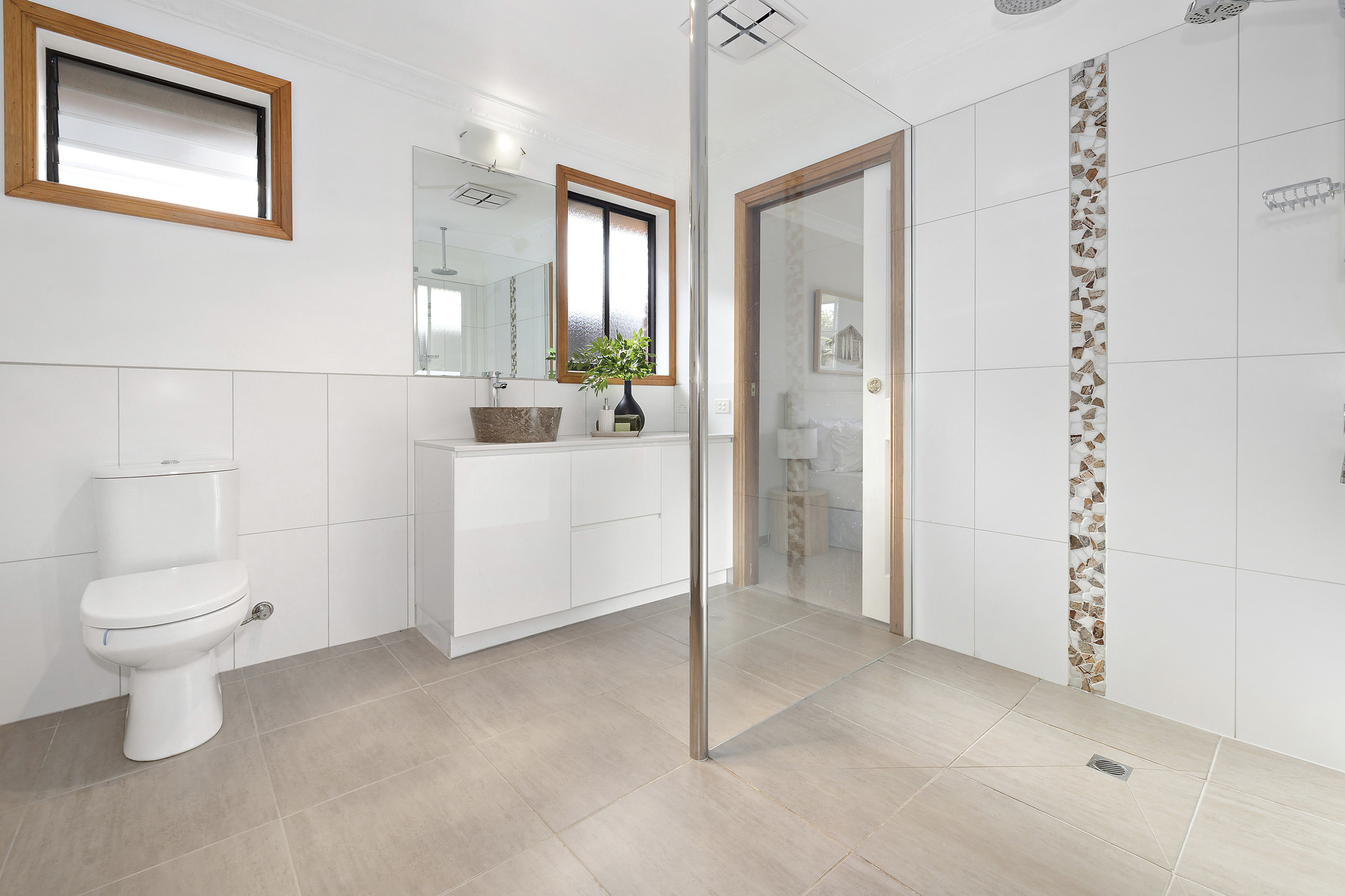 On the ground floor, a roomy secondary master suite with a walk-in robe and ensuite offers fernery views and serves as an ideal space for guests or teenagers needing their own area. Two additional bedrooms on this level, one with direct access to a shared bathroom, provide flexible accommodation options.