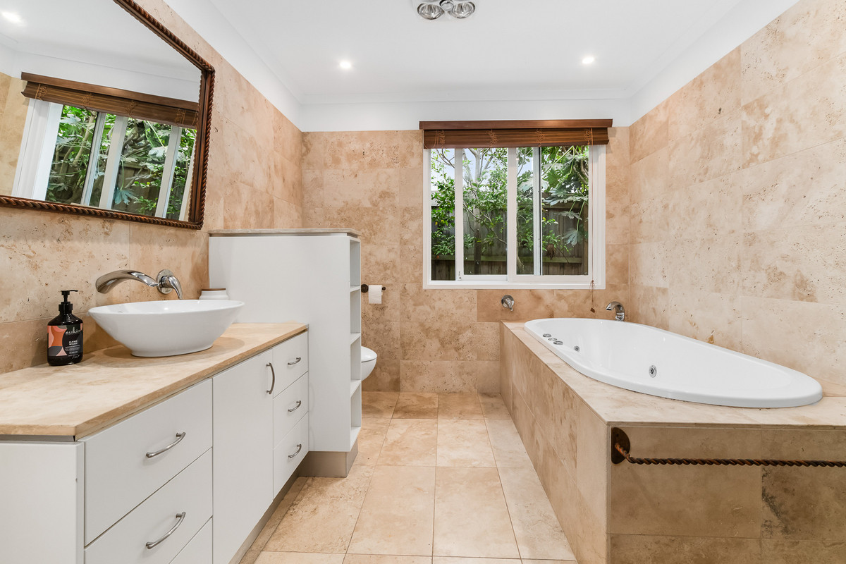 Step outside to the backyard oasis which has had a recent makeover. The garden is a private haven, complete with a covered verandah and a poolside terrace with a charming water feature/pond. The lovely salt chlorinated and solar heated in-ground pool, surrounded by sandstone pavers, is the perfect retreat on warm summer days, and the established trees provide cooling shade. There is also a hidden garden shed and vegetable garden beds for the green thumb of the family.