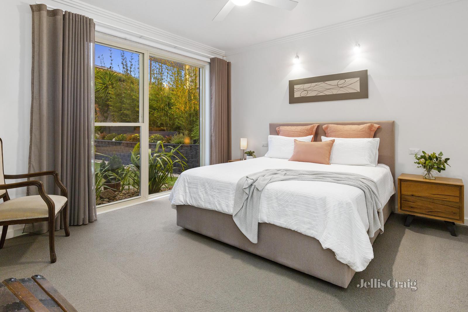 An elegantly refined and understated presence utilises angled aesthetics, split-level architecture, and expert landscaping to maximise the livability of its 867 sq. metre (approx.) allotment, creating a privacy-inducing setting that's as easy-care as it is truly breathtaking. An open living environment is privy to painted sunsets over the bay every day, with walls of double glazing reaching out to a balcony terrace taking in scenes over Mount Martha Park, Arthurs Seat, and the Portsea Peninsula.