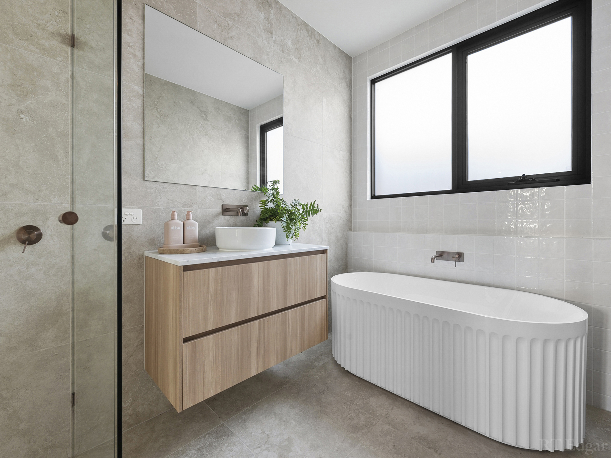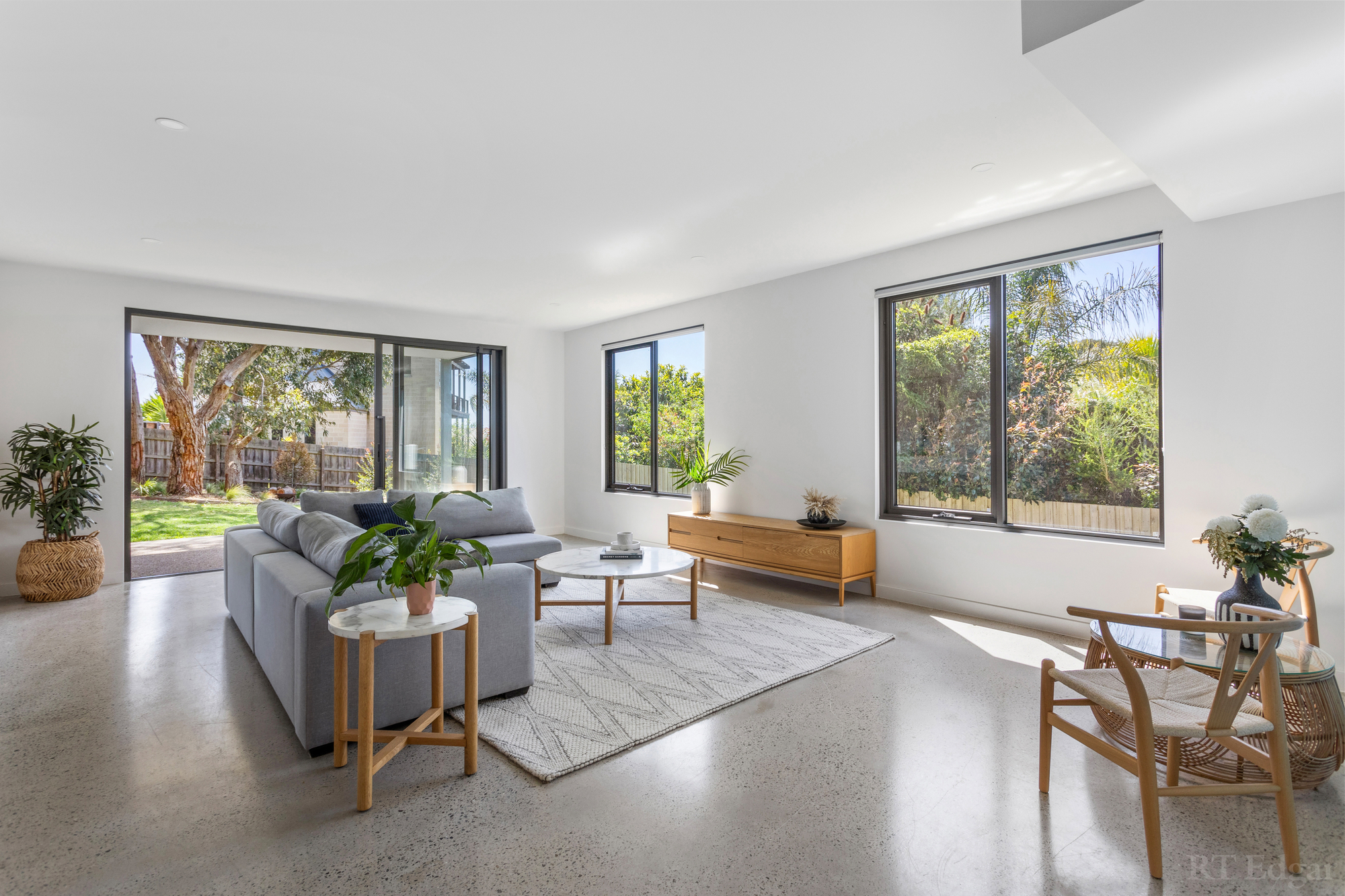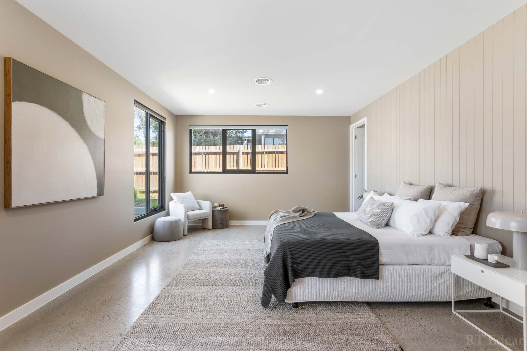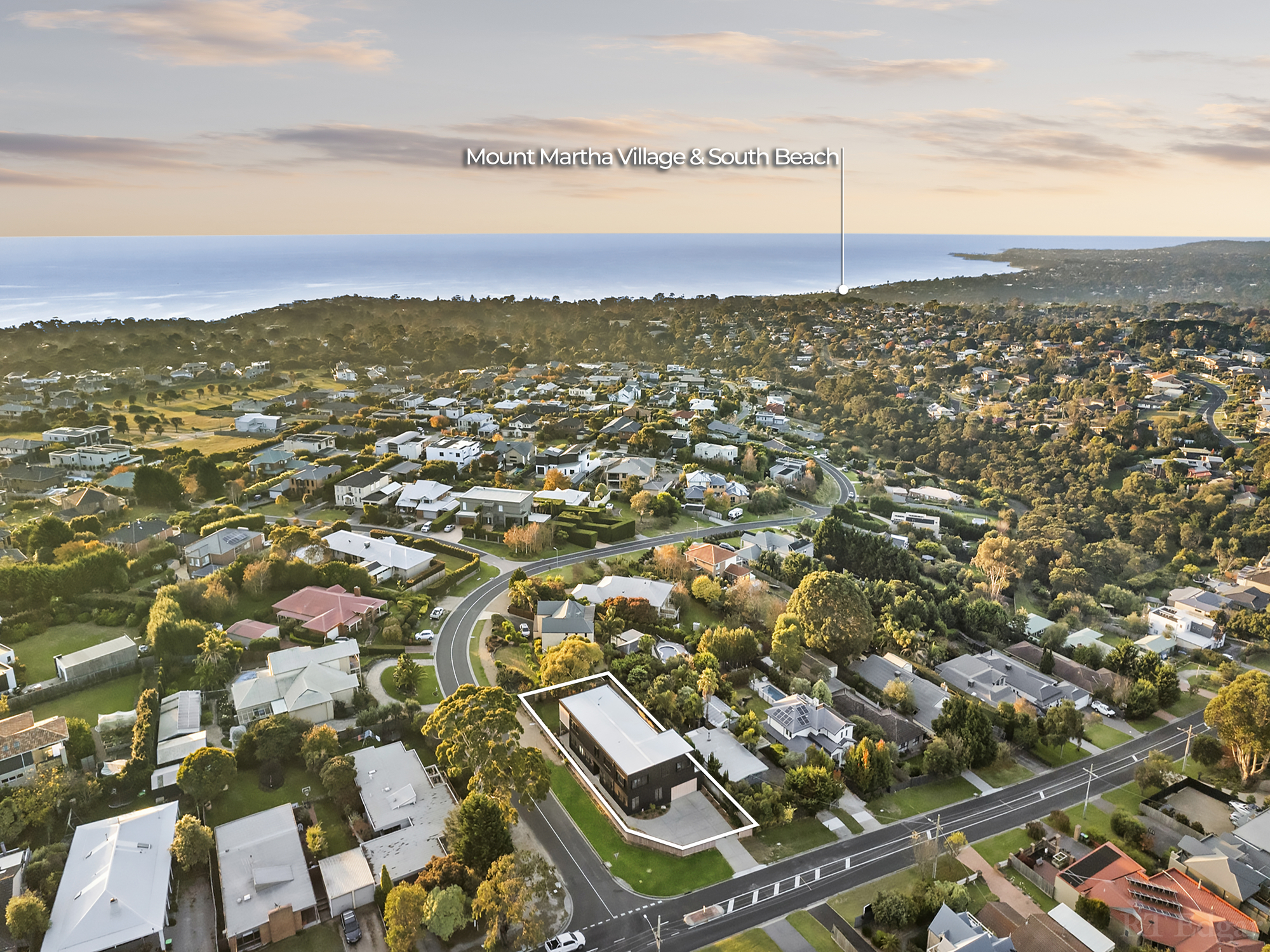 High-end finishes include bespoke cabinetry, internal doors, floor-to-ceiling double-glazed windows, block-out blinds, wool carpet, ducted heating and cooling, and an oversized double garage with ample parking spaces including rear access. This home has been designed with careful attention to detail, with a KWD colour consultation ensuring a harmonious blend of colours throughout the space, and the overall design being functional, elegant and sustainable, perched atop a prime location with proximity to Mount Martha Village, Balcombe Grammar and the finest beaches on the Peninsula.