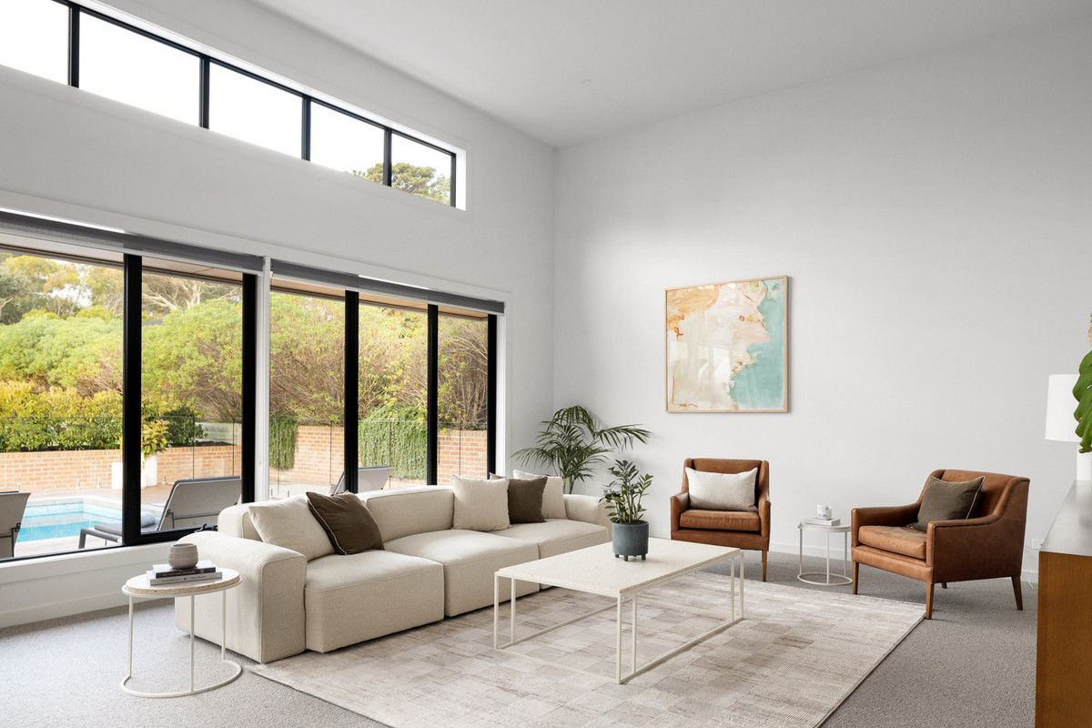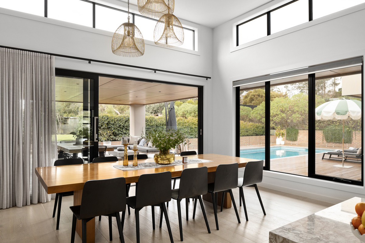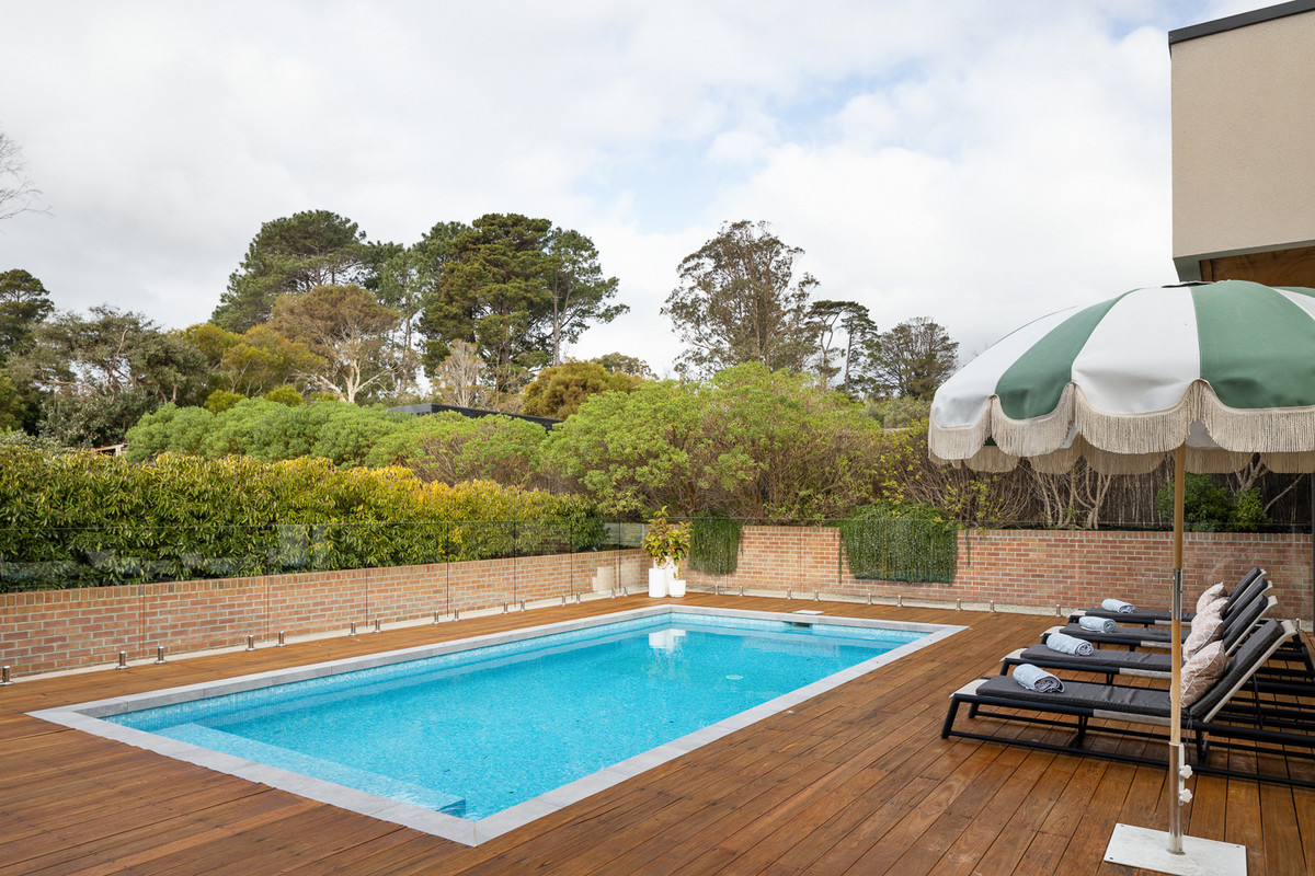 Features: - Four bedrooms with three offering walk-in robes, plus a spacious study - Open kitchen with SMEG appliances, butlers pantry, integrated dishwasher, stone, marble and concreate elements - Two separate living zones – main living featuring a Jetmaster fireplace - Engineered oak flooring, sheer linen blinds & blockouts throughout - A&L aluminium black doors & windows throughout - Outdoor tiled pool with glass fencing - Airsmart heating & cooling system throughout - Three car remote control garage with electric rollerdoor to backyard and internal access - Three ensuites with Astra Walker tapware, heated tiles, stone benches, porcelain flooring & walls - Front security system - Wine cellar - Spacious laundry with storage & access to the external courtyard