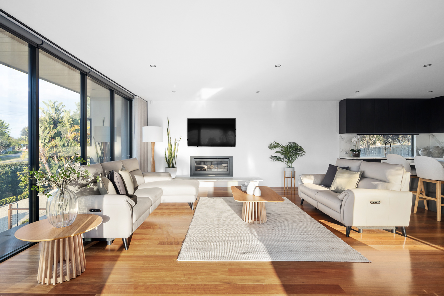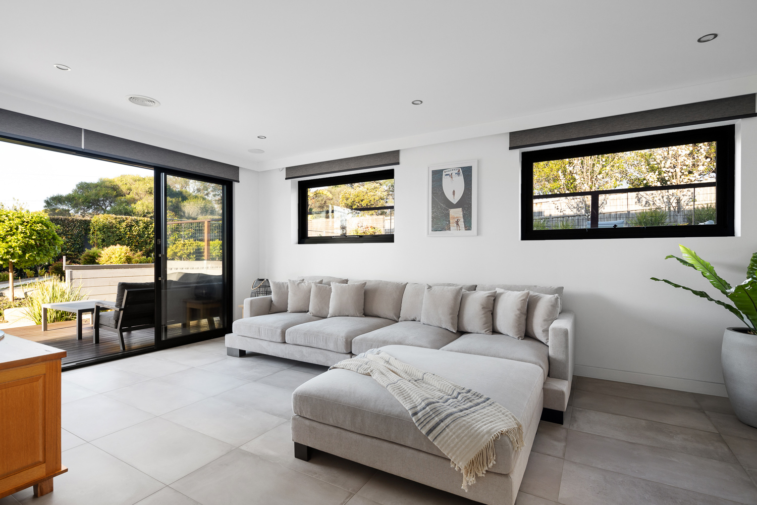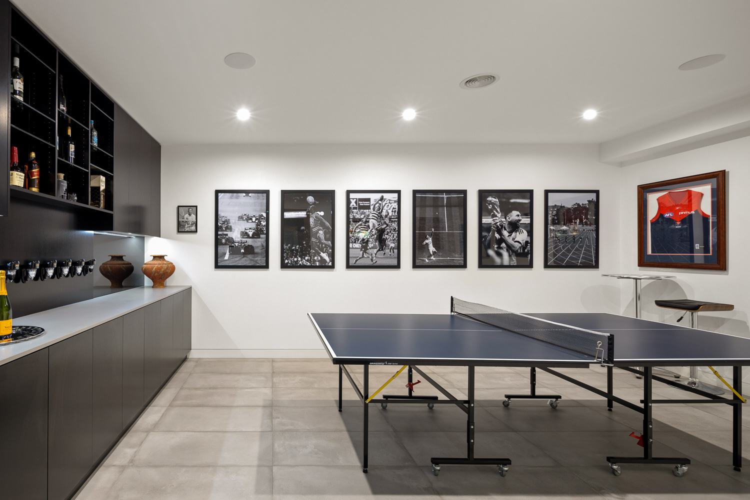 Perfect for entertaining, the lower level boasts two guest bedrooms, a living area, a games room with a built-in bar, a kitchenette, a home cinema, and a gym. State-of-the-art amenities are fully automated and controllable via your smartphone, including an integrated sound system, ducted heating and cooling, smart blinds, and secure front gates.