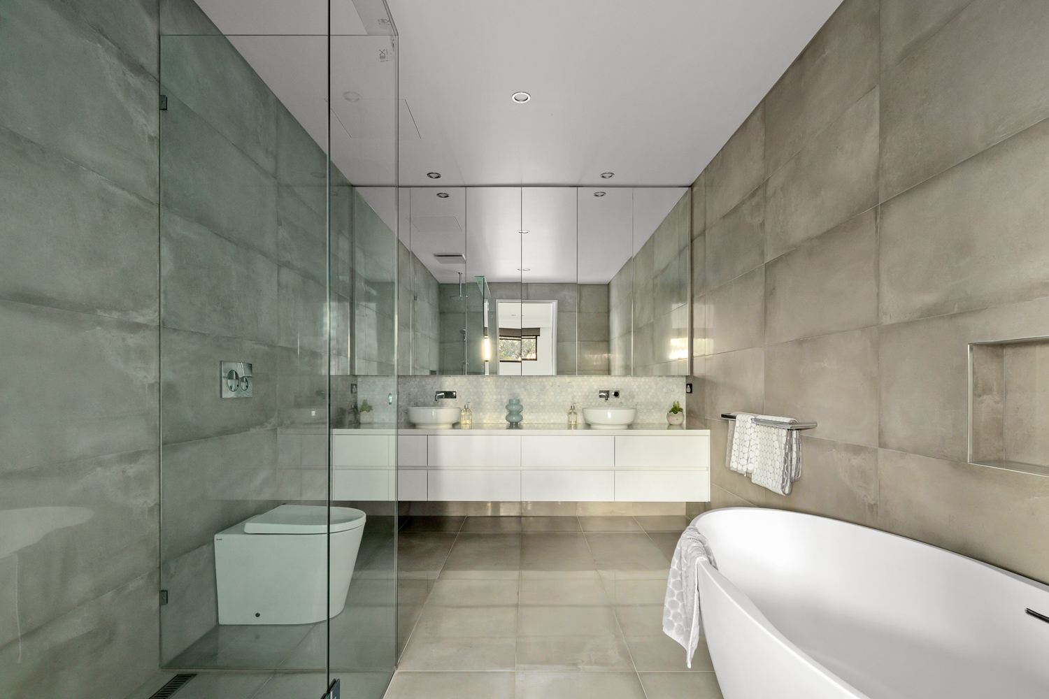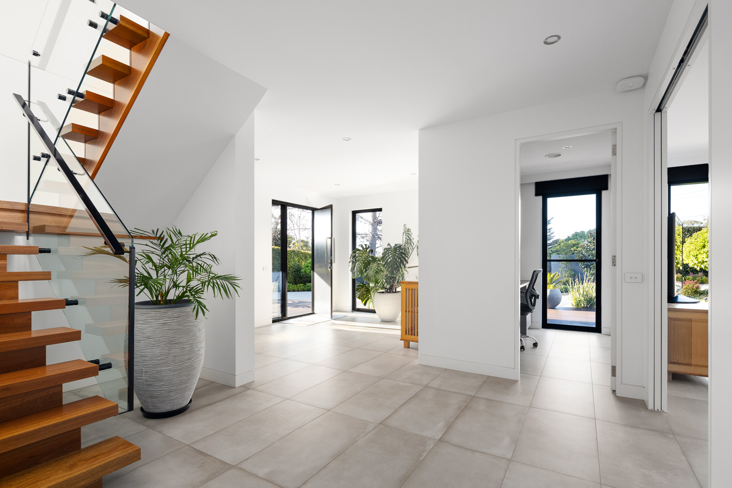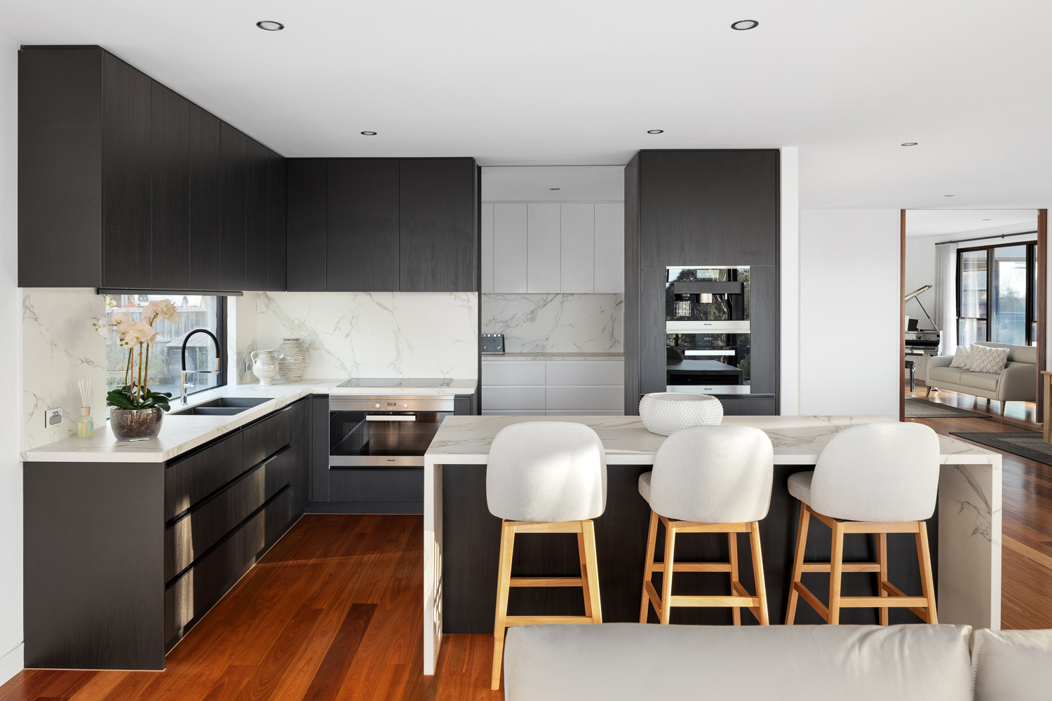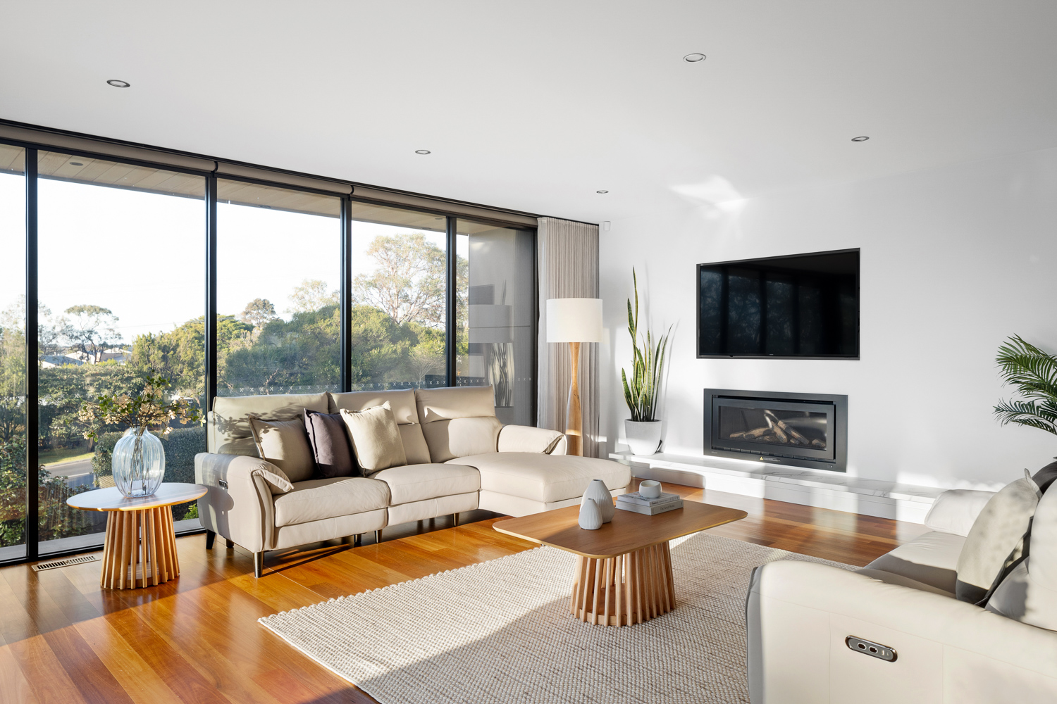 Perfect for entertaining, the lower level boasts two guest bedrooms, a living area, a games room with a built-in bar, a kitchenette, a home cinema, and a gym. State-of-the-art amenities are fully automated and controllable via your smartphone, including an integrated sound system, ducted heating and cooling, smart blinds, and secure front gates.