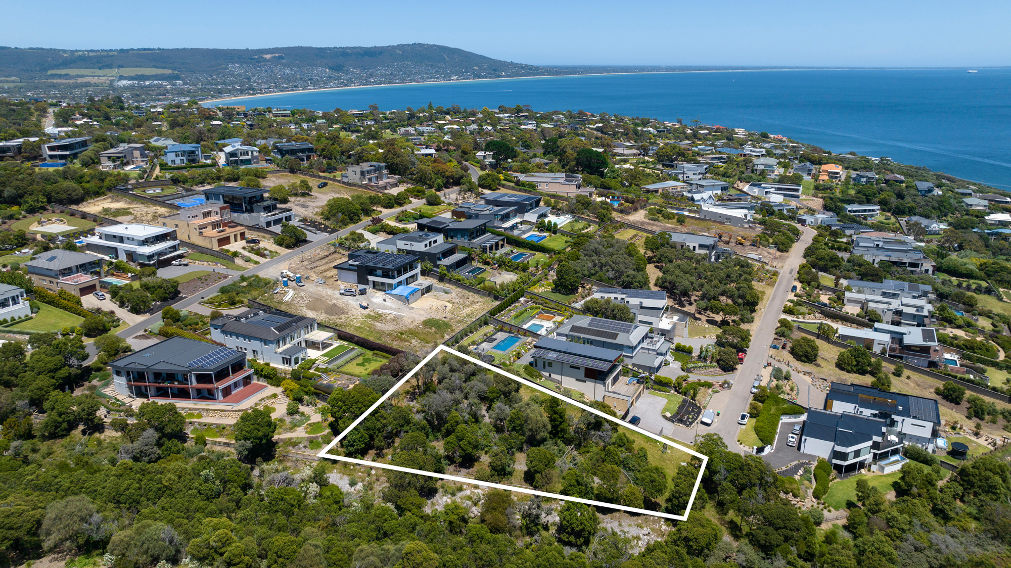 - 1/2-acre vacant allotment abutting bushland reserve - Panoramic bay views protected by an overlay - Select hillside location is prized for its privacy & exclusivity - Huge parcel to accommodate a large contemporary home - Ample room for a vast alfresco deck & swimming pool - Peaceful & private backdropped by birdsong - Exclusive & tightly held no-through road - Surrounded by a choice of excellent schools - Moments to the golf course & Martha Cove Marina - Minutes to the village shops & cafes - Close to stunning beaches & crystal coves - Award-winning wineries close by - Concept plans available for architecturally designed home