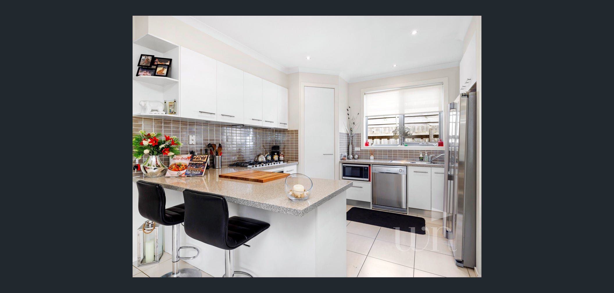 - Sleek open-plan kitchen with ample storage, stainless-steel appliances and stone benchtops